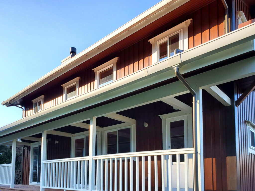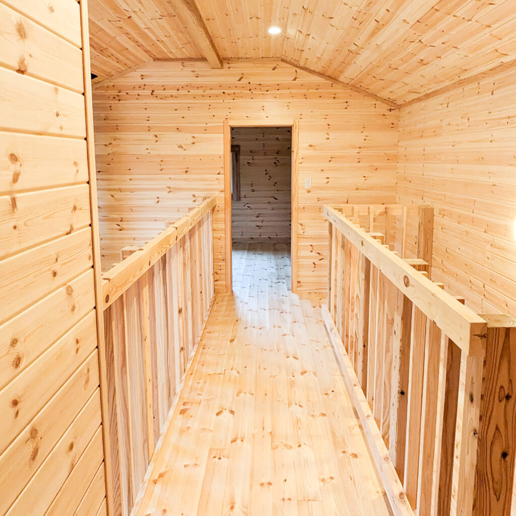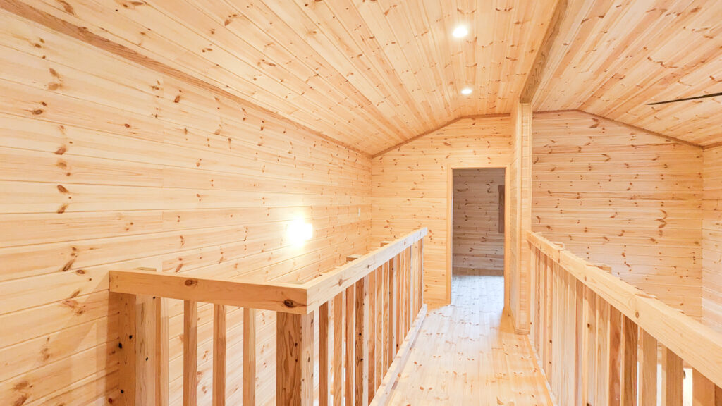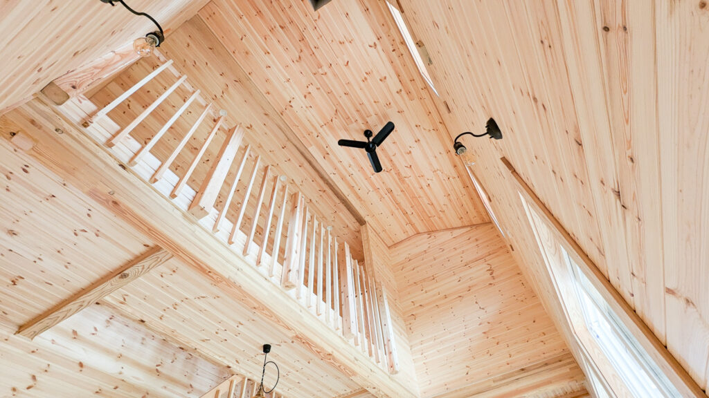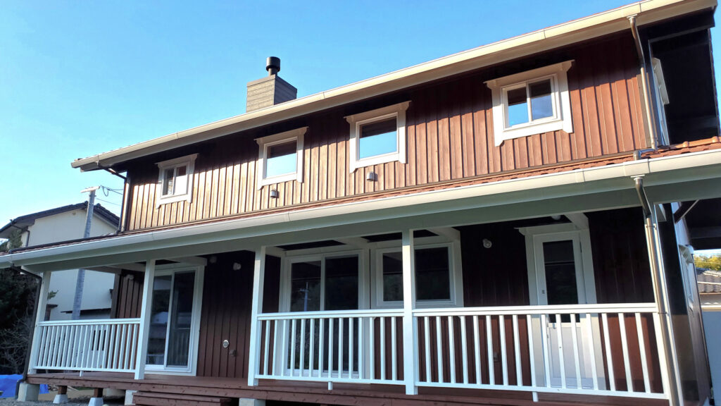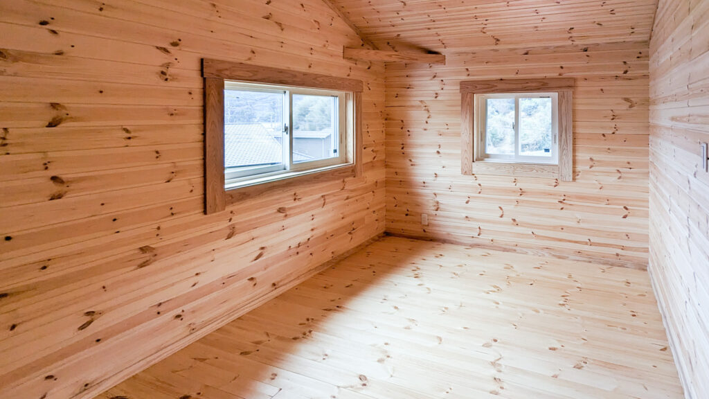 外は深い軒とデッキで“外とつながる居場所”を確保し、室内は木の香りが感じられる明るい内装で統一。吹き抜け上部のロフトは、趣味やワークスペースなど多目的に使える余白として活躍します。収納スペースも確保され、日常が整う住まいです。